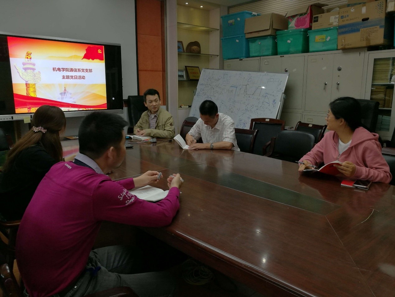 5月30日,机械与电子信息学院各党支部组织党员开展主题党日活动,学习《中国共产党纪律处分条例》、《中华人民共和国监察法》、《湖北高校”支部建设年”方案》、《湖北高校党支部规范化建设试点工作方案》、《党政领导干部选拔任用工作条例》,同时学习了习近平总书记在纪念五四运动100周年大会上的讲话精神,并展开了热烈讨论。