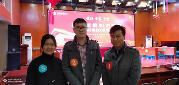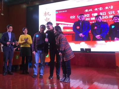 (学院工会宣传委员丁腾飞)12月8日,以“爱校 爱家 爱生”为主题的教职工“校史校情知识竞赛”决赛在东区工会教工活动中心举行。本次竞赛共有23支代表队报名参赛,经过三场预赛选拔,全校共11支代表队进入最后总决赛环节。我院代表队沉着冷静,准备充分,7进3的预赛取得第二名,并在最后的总决赛荣获三等奖。