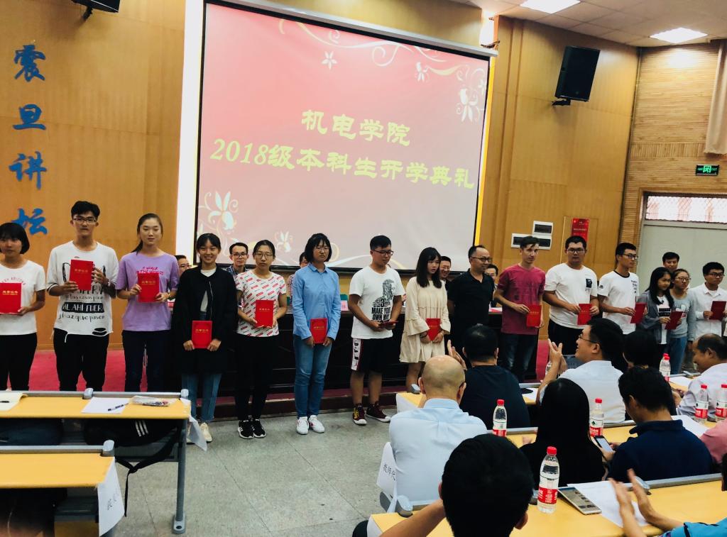 (通讯员 任婷婷 姚复嵩 许小康)9月27日14时30分,机电学院2018级本科生开学典礼于教三楼109室准时举行。机电学院党委书记瞿祥华,院长丁华锋,副院长李波、罗杰、文国军、黄田野,电子信息工程系主任陈分雄,机械设计制造及其自动化系主任宋潮龙,工业设计系主任陈晓鹂,通信工程系主任李杏梅及各专业教师代表,2018级全体新生参加本次活动。典礼由党委副书记齐世学主持。