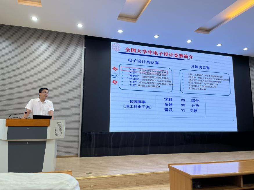 周立青教授以《从课程到竞赛,自我提升从来不会晚》为题进行了分享交流。周教授从不同层次的学习阶段出发,详细讲解了电赛入门培训、电子工程师的知识储备与技能修炼、高手进阶以及国赛储备与封神之战等内容。最后,他以自身的电赛之路为例,鼓励学生们在电子竞赛中不断提升自我。