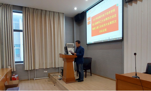 会议第二阶段,院工会主席郝国成从组织机构、民主参与、权益维护、文体活动、自身建设等方面汇报了2021年一年来院工会的工作成果。院工会开展了丰富多彩的职工活动,并取得了优异的成绩,为学院改革发展稳定贡献了智慧,增添了力量。最后由全体教师举手表决通过。学院办公室主任李昌平代表学院办公室做《2021年度机械与电子信息学院财务执行情况的报告》,对学院的各项收支情况做了详细而又具体的说明。