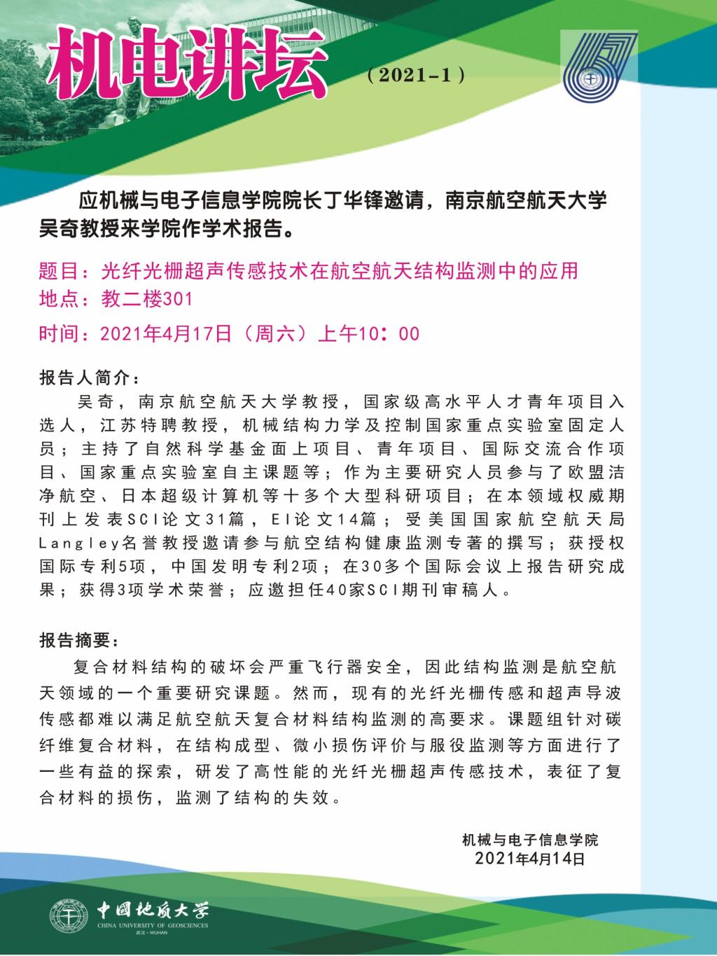 机电讲坛2021-1:南京航空航天大学吴奇教授学术报告