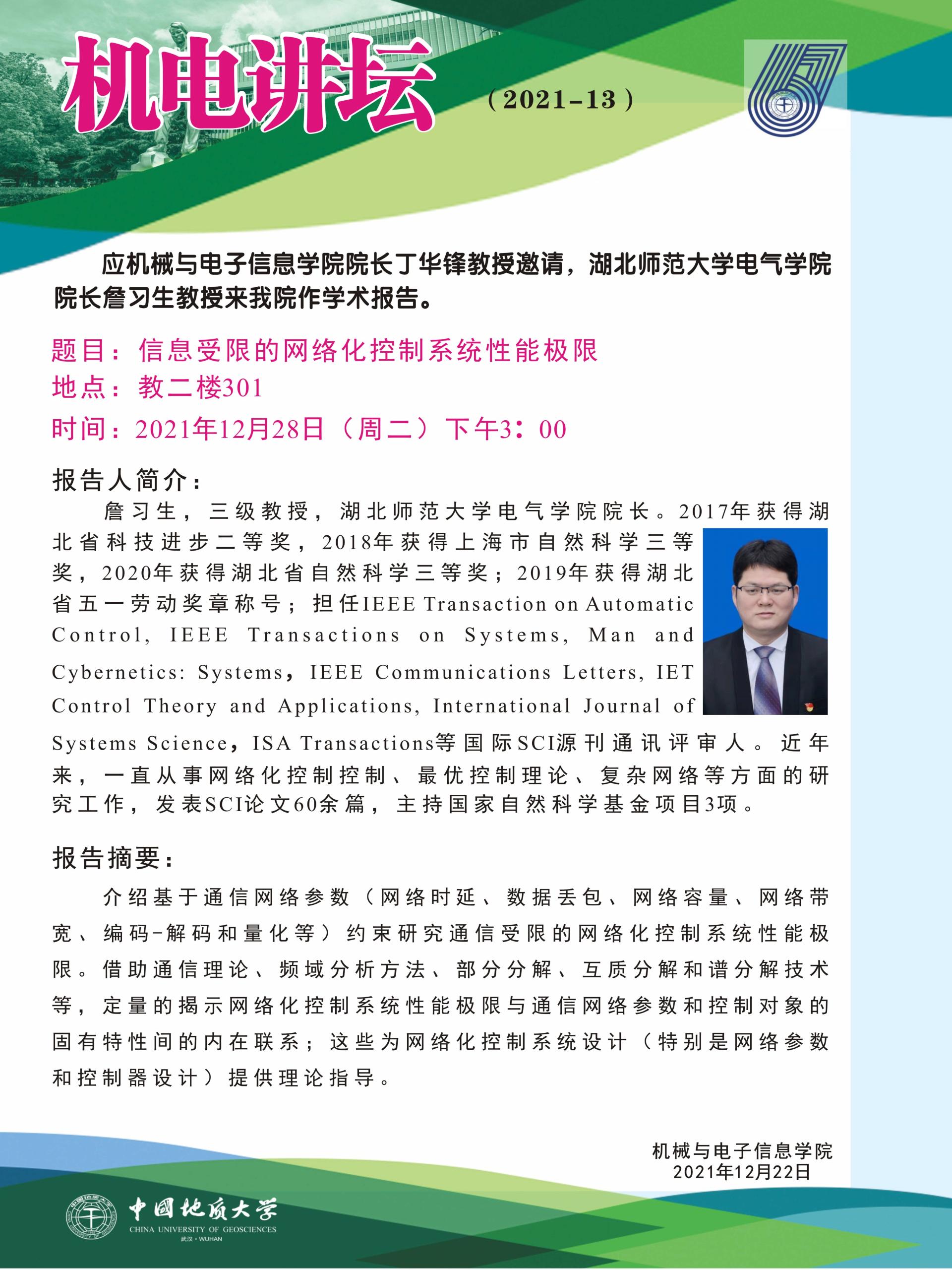 机电讲坛2021-13:湖北师范大学詹习生教授学术报告