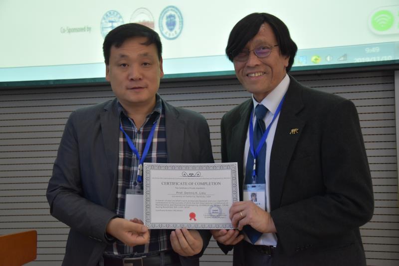 会议于11月10日上午在教二楼301会议室开幕。会议伊始,本次大会主席,中国地质大学(武汉)机械与电子信息学院院长丁华锋教授致开幕辞,代表所有大会委员会成员对学者们的出席表示热烈欢迎,他表示相信各位专家的精彩报告与讨论将推动机电与机械工程领域的前沿研究,加强领域了解、促进合作。来自美国加州大学伯克利分校的Dennis K. Lieu教授就混合动力汽车动能回收系统的控制作了主题演讲。会议共进行了4个主题演讲,随后,来自合肥工业大学的訾斌教授对演讲者进行了颁奖。