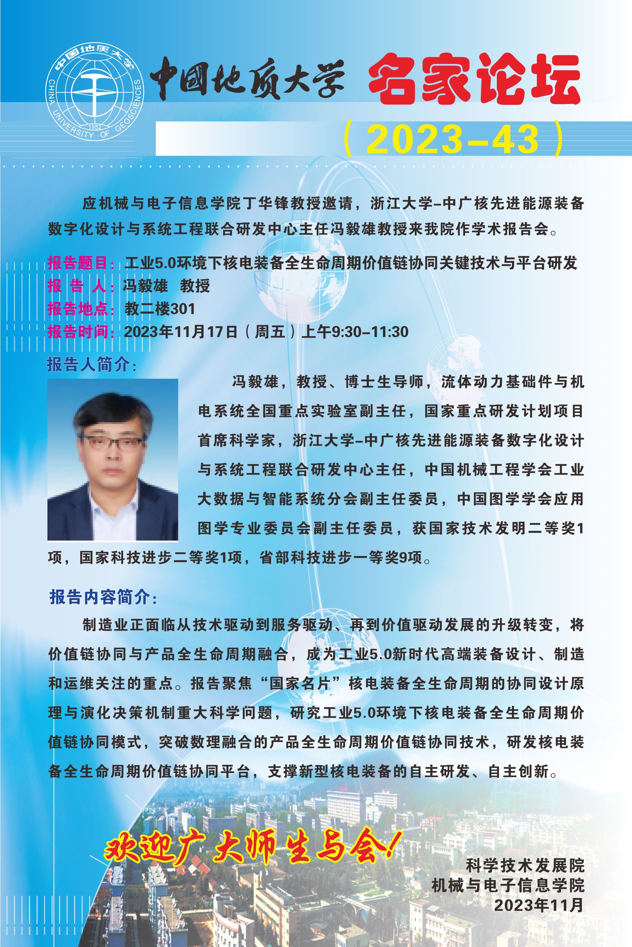 【11月17日】名家论坛(2023-43):浙江大学冯毅雄教授来我院作学术报告会