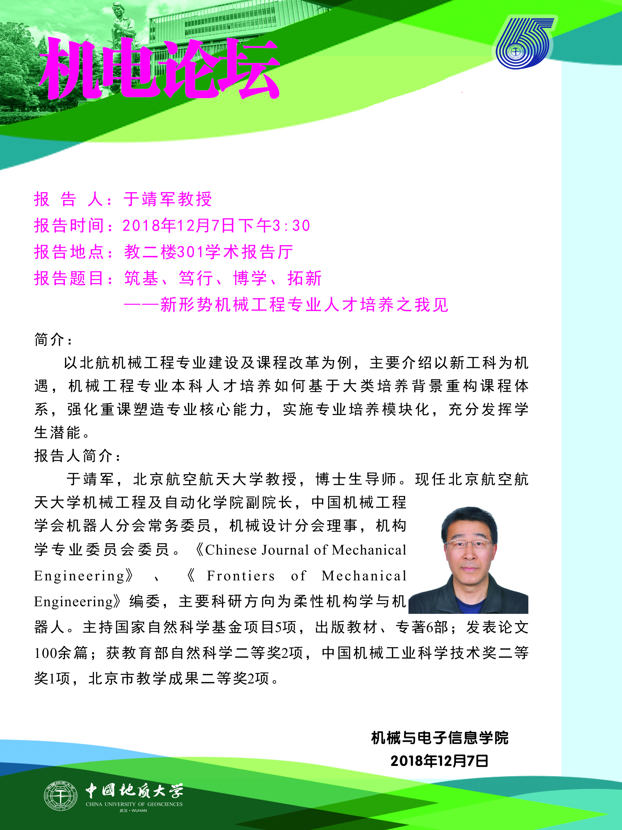 机电论坛:北航于靖军教授来我院作报告