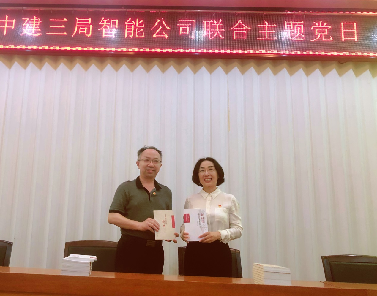 在激情澎湃的国歌声中,联合主题党日活动正式开始。全体参会人员在重温入党誓词后观看了《“两山”医院的智慧“心”》云宣讲视频。该视频讲述在武汉疫情防控胶着对垒的关键时刻,中建三局智能公司克服重重困难托举起生命重任,用科技和智慧锻造利剑铠甲,用奉献和拼搏守护大江大河,用执着和坚守迎接黎明曙光,生动诠释了尊重科学的伟大抗疫精神。
