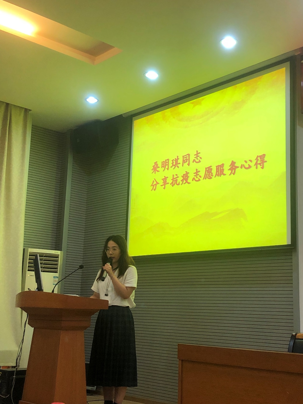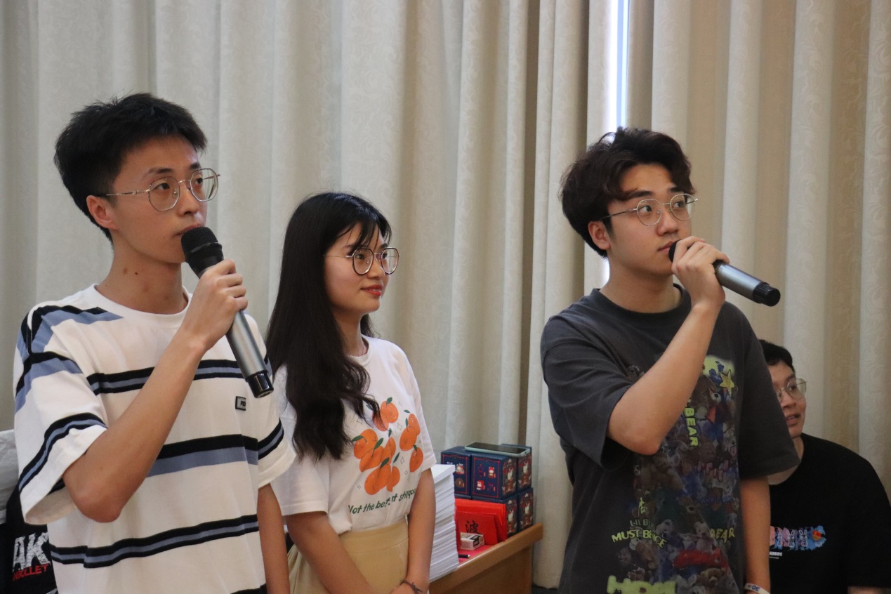 随后,中建三局智能公司叶超同志分享参与火神山项目建设的战斗历程。他讲到,我们要不惜一切代价克服困难,尤其是党员同志们这个时候要充分发挥带头作用,竭尽所能保障建设进度。机械与电子信息专业工设党支部桑明琪同志分享抗疫志愿服务心得。她说,作为一名党员,在大战大考中要发挥先锋模范作用,力所能及的投身到防疫工作中去。