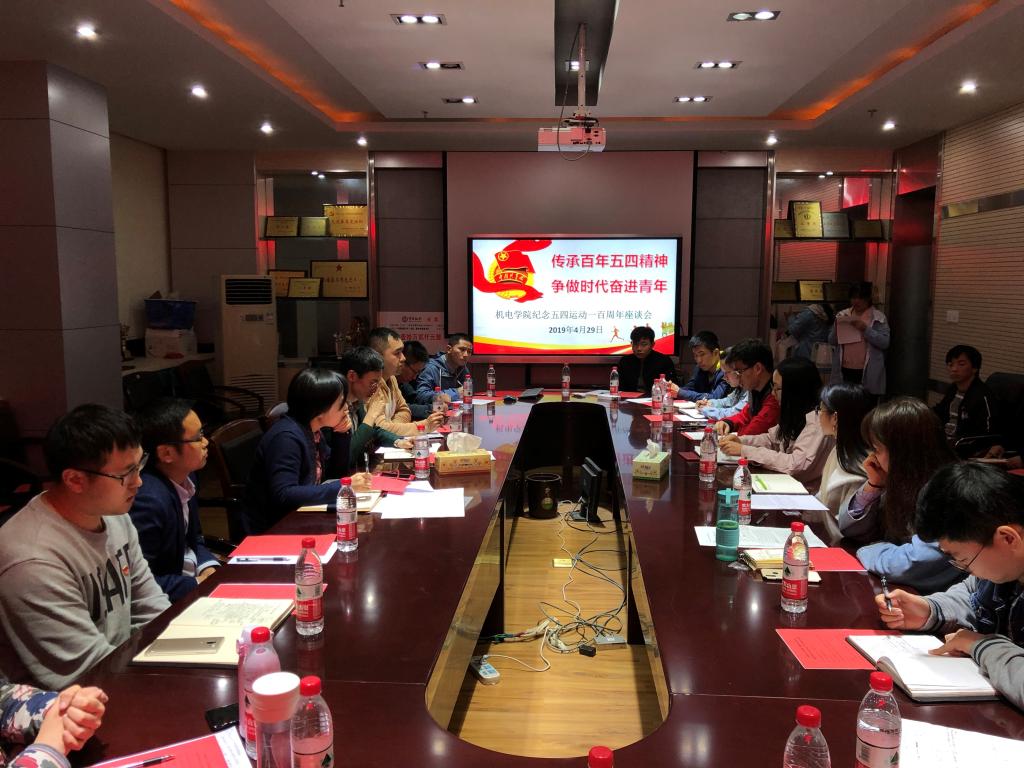 (通讯员:曹艺、杜育 摄影:张晨、李红慧)为纪念五四运动一百周年,激励青年学生大力弘扬五四精神,在党的领导下勇做走在时代前列的奋进者、开拓者、奉献者。4月29日晚,在教二楼314机电学院隆重召开纪念五四运动一百年座谈会,学院党委副书记于晓舟、团委书记杜育、青年教师代表曹文熬、辅导员代表丁钰峰及学院研究生、本科生学生代表参加座谈会。
