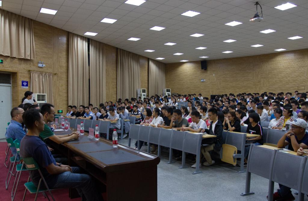 院长丁华讲话。他从机电学院历史沿革、现阶段师资力量、教学成果、科研方向、科研成果、人才培养计划等方面向新生介绍了机电学院。并希望大家能够珍惜时间、刻苦学习,做到品德高尚、基础厚实、专业精深、知行合一。