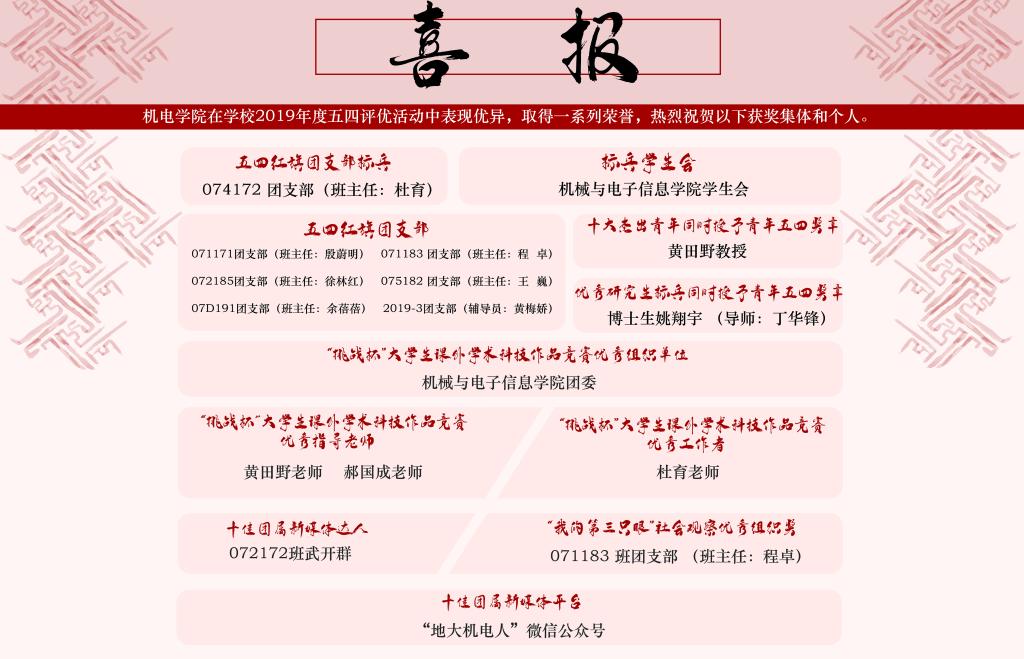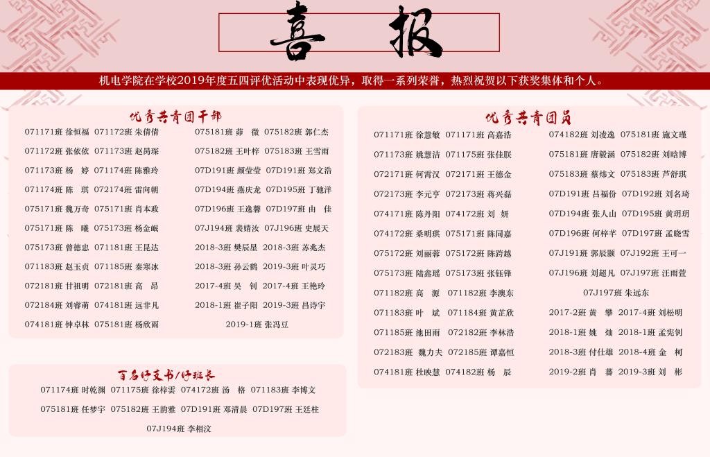 [2020.6]我院师生在校2019年度五四评优中荣获佳绩
