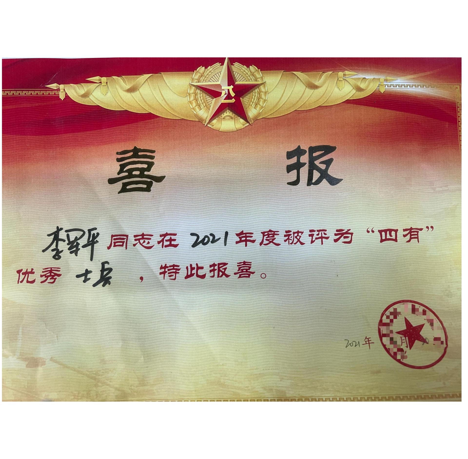 [2022.3]我院2018级学生被评为“四有”优秀士兵